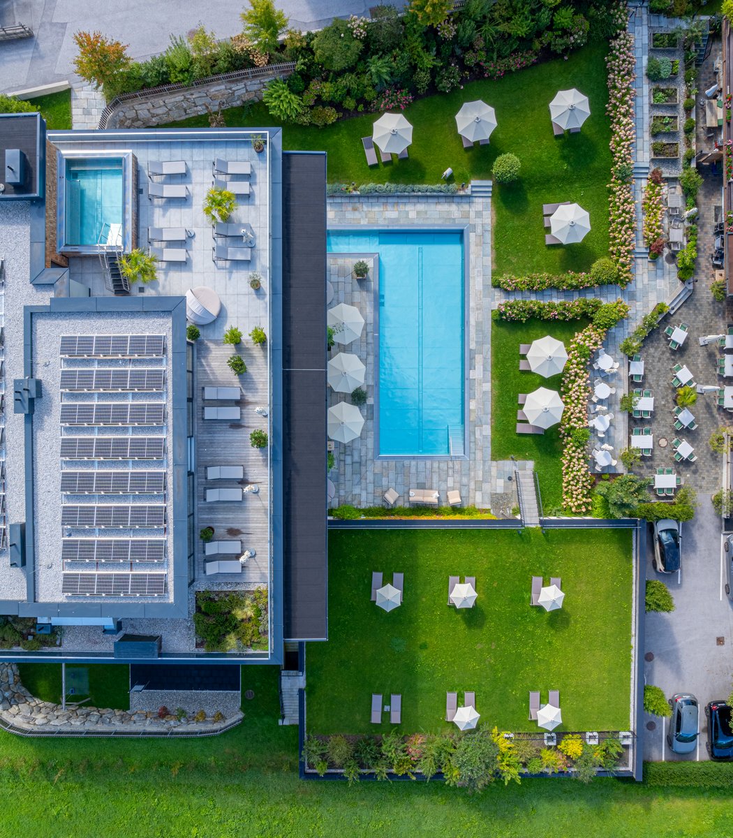 Besonders im Bereich der Energiegewinnung und –einsparung wurden Investitionen getätigt, die den CO2-Abdruck des Betriebs deutlich verringern. Der Pool wird teils beheizt durch die Wärmerückgewinnung der Klimaanlage. Die Hackschnitzelheizung versorgt das Haus durch Biomasse aus dem Zillertal und die Photovoltaikanlage verwandelt Sonne direkt in Ökostrom.